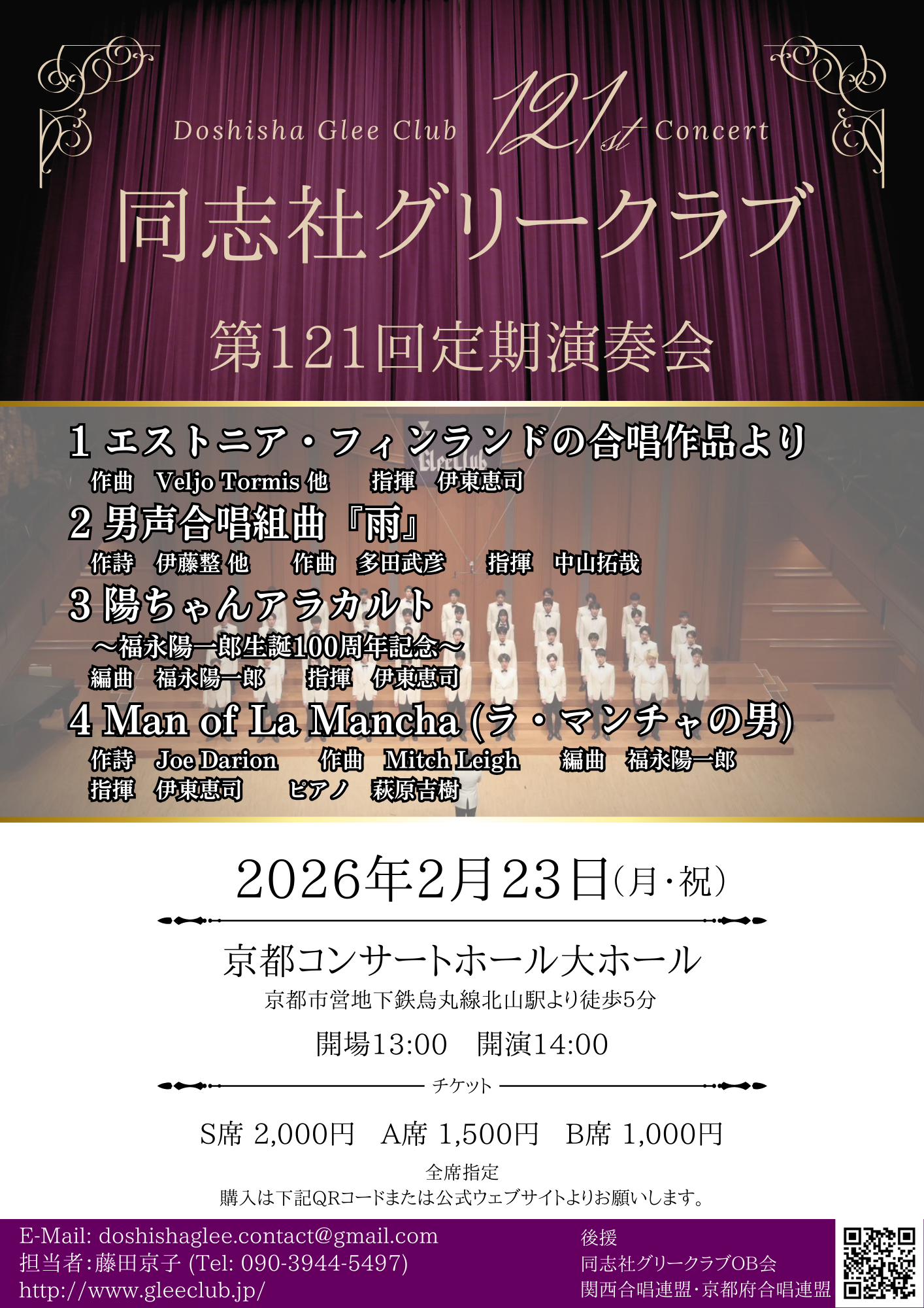 開催日程 : 2026年02月23日 開催時間 : 14:00 〜 16:00 [開場時間等] 13:00開場 開催場所 : 京都コンサートホール 大ホール 料金 : S席2,000円、A席1,500円、B席1,000円(前売り・当日券同一価格)