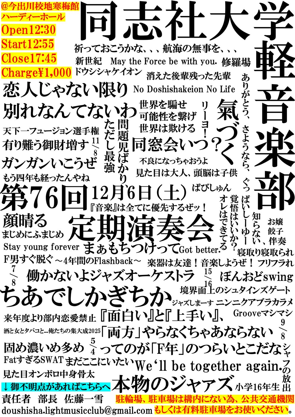 開催日程 : 2025年12月06日 開催時間 : 12:55 〜 17:45 [開場時間等] 12:30 開場 開催場所 : 寒梅館ハーディーホール 料金 : ¥1000
