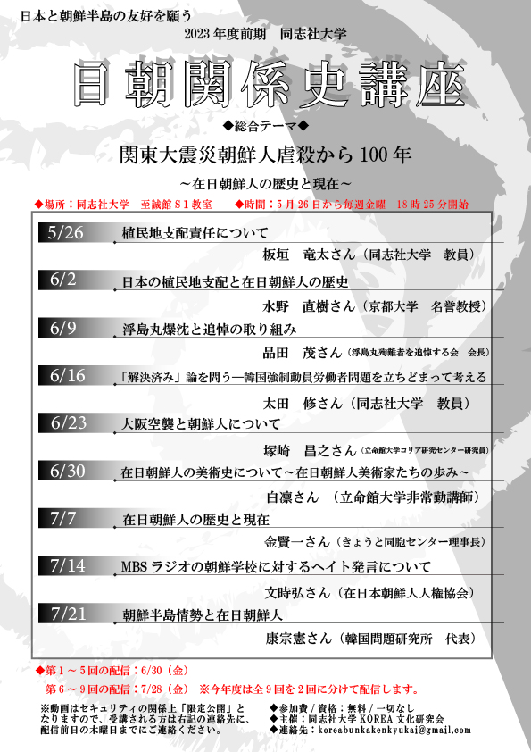 日本と朝鮮半島の友好を願い行う対外講座。講師をお呼びし、朝鮮半島情勢や日朝関係についての講演を行う。